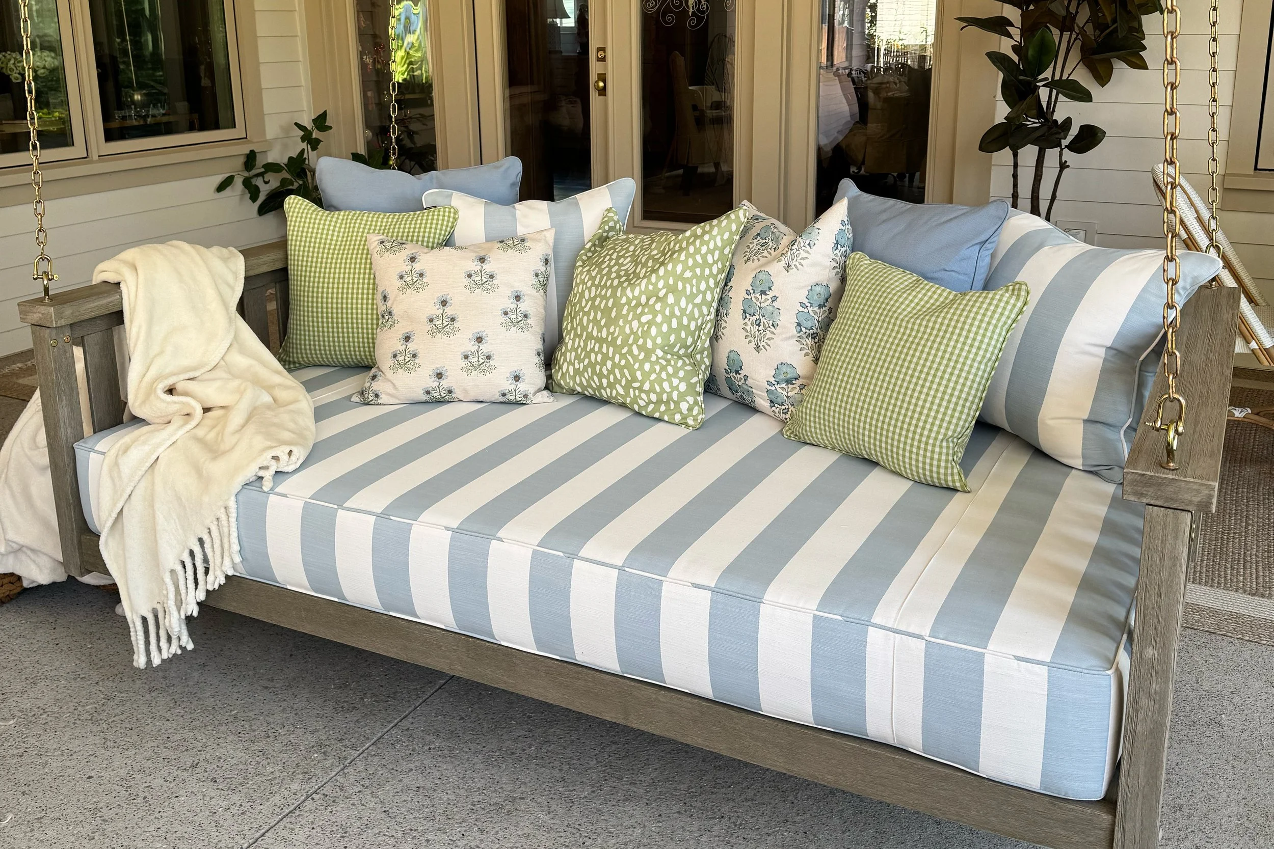 Outdoor cushions represent a particular specialty. Using performance fabrics that coordinate with your interior drapery creates a seamless indoor-outdoor flow. We help you select materials that withstand the elements while maintaining the elevated aesthetic you want.