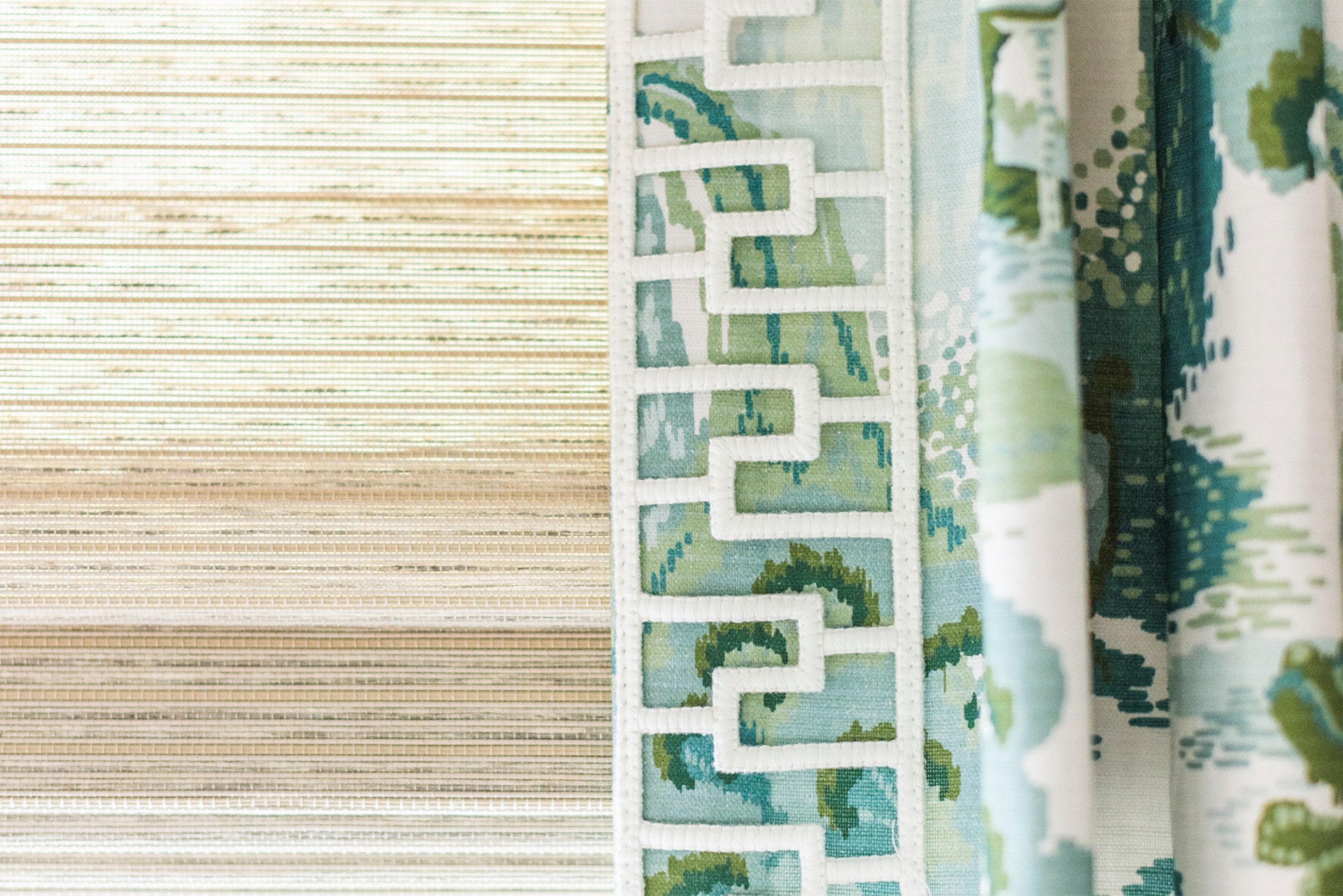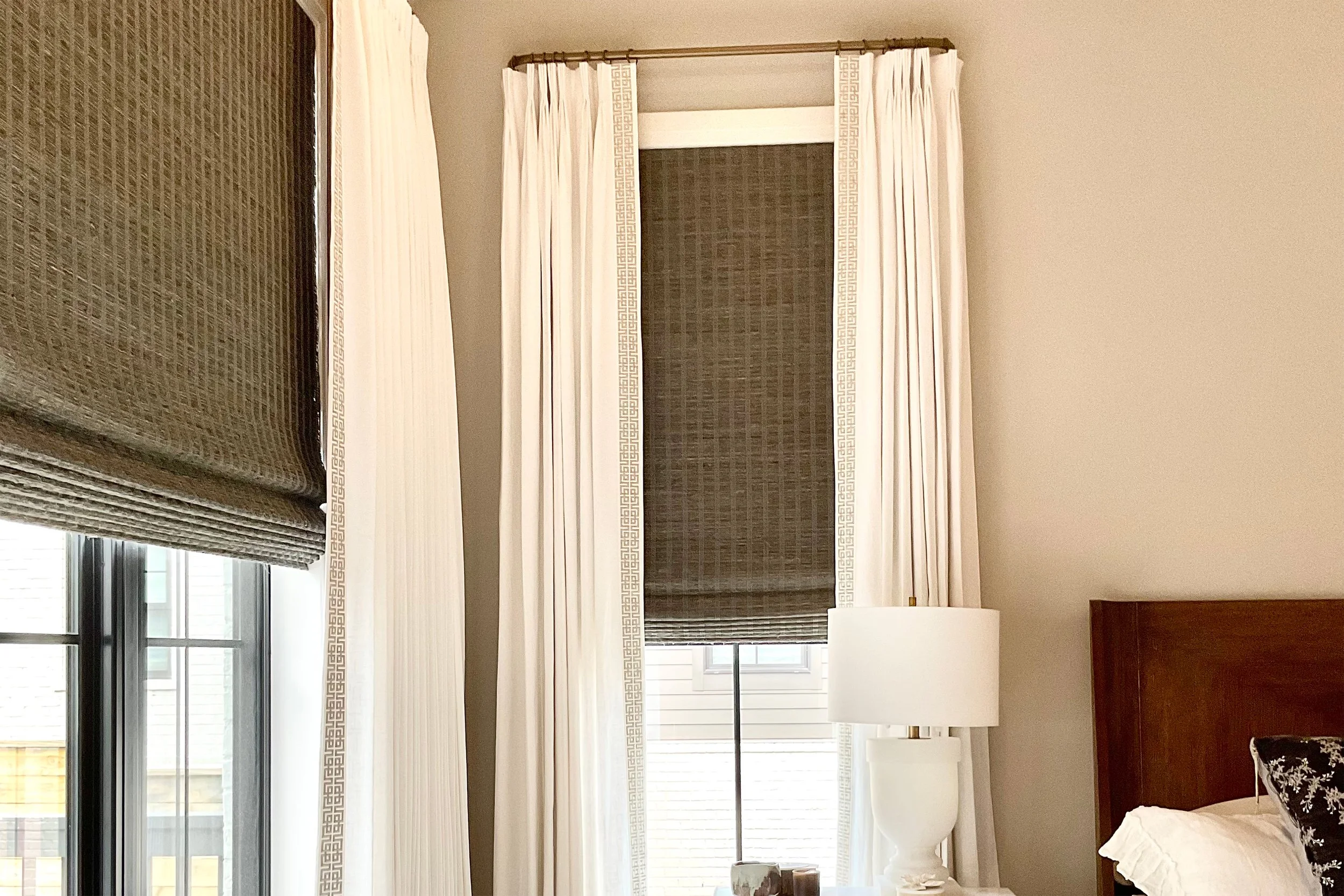 Roman shades in textured grasscloth behind smooth silk drapery exemplify this approach perfectly. The grasscloth provides organic interest while the silk brings elegance. Neither competes because they're serving different functions in the overall design.