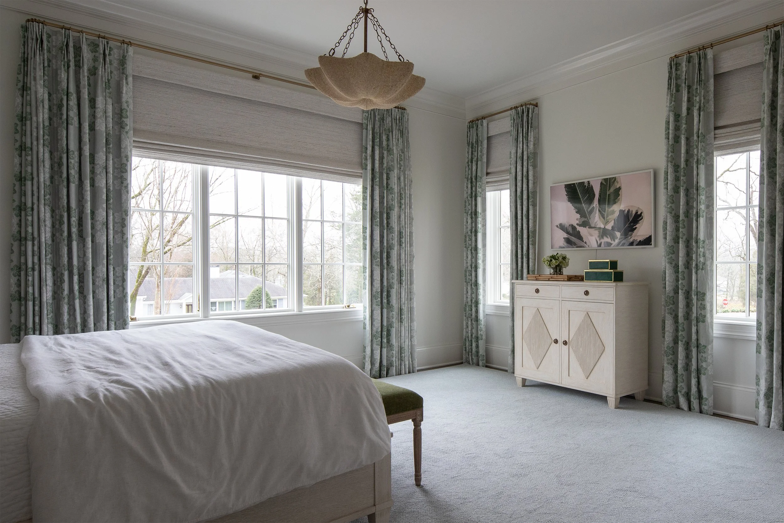 Bedrooms benefit from softer textures that create a sense of coziness without stimulation. Layered sheers with flowing drapery, or subtle texture variation within similar tonal families. The goal is depth that feels restful rather than energizing.