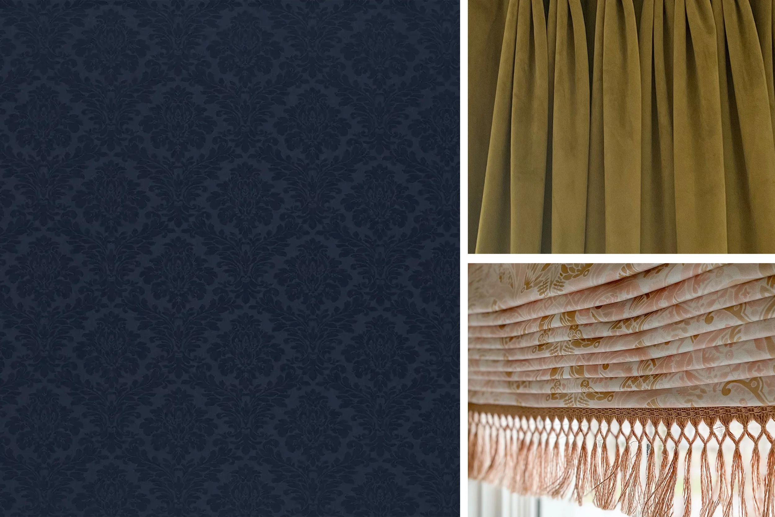 Luxury textiles work best in conversation with each other. We might pair bold damask wallpaper with solid velvet upholstery and linen window treatments - creating layers of texture and pattern that feel cohesive rather than chaotic. Varying scale while maintaining color relationships is what makes it work. This approach serves both designer projects and personal home renovations equally well.